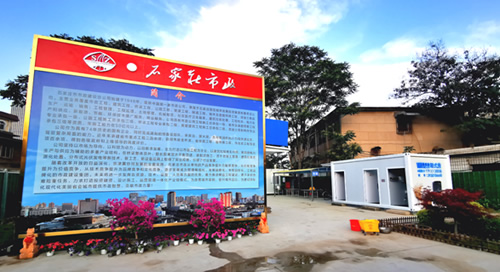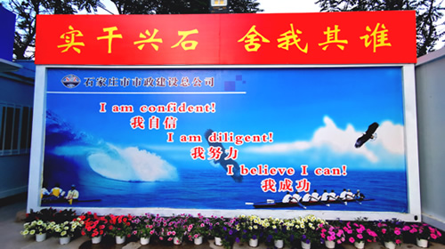 中央商務(wù)區(qū)正太廣場項(xiàng)目部,根據(jù)現(xiàn)場實(shí)際情況及廣場圖紙,因地制宜,利用原地道橋位置進(jìn)行簡約化設(shè)計(jì),占地東西長40米,南北寬20米。麻雀雖小五臟俱全,項(xiàng)目布局充分利用移動(dòng)板房外立面做文化設(shè)計(jì),用作公司簡介宣傳墻、食堂文化宣傳墻及旗桿背景墻。項(xiàng)目部除辦公區(qū)外,還設(shè)置了餐廳、獨(dú)立衛(wèi)生間、淋浴間等生活設(shè)施以及微景觀種植園等休閑場所,整個(gè)項(xiàng)目部簡約而不簡單,注重以人為本,盡可能提高項(xiàng)目部人員工作、生活水平,激發(fā)了干部職工干事創(chuàng)業(yè)的激情,為推進(jìn)項(xiàng)目建設(shè)提供了有力支撐。